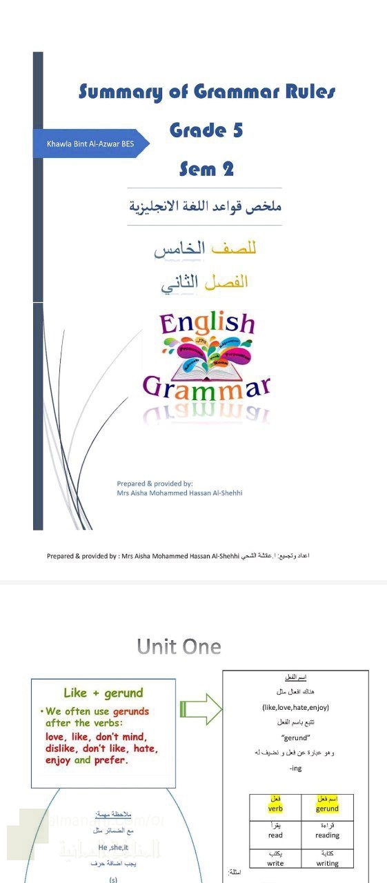 | ملخص قواعد اللغة Grammar - إعداد: عائشة الشحي | ||