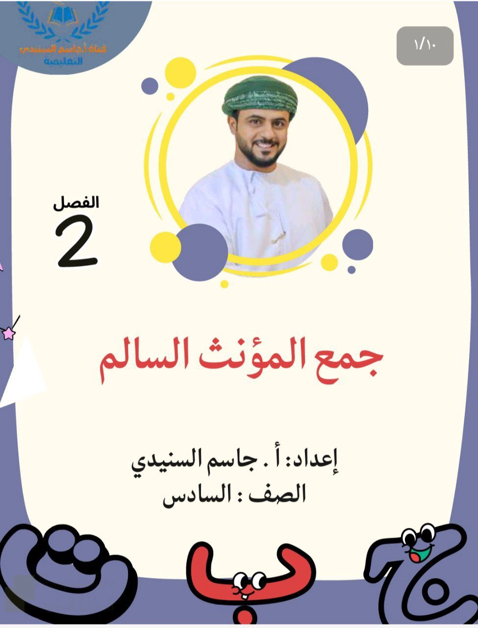 الوصف: يقدم الملف درساً شاملاً عن جمع المؤنث السالم، موضحاً أنه اسم يدل على أكثر من اثنتين ويلحق به ألف وتاء زائدتين (مثل: معلمة ← معلمات). | ||