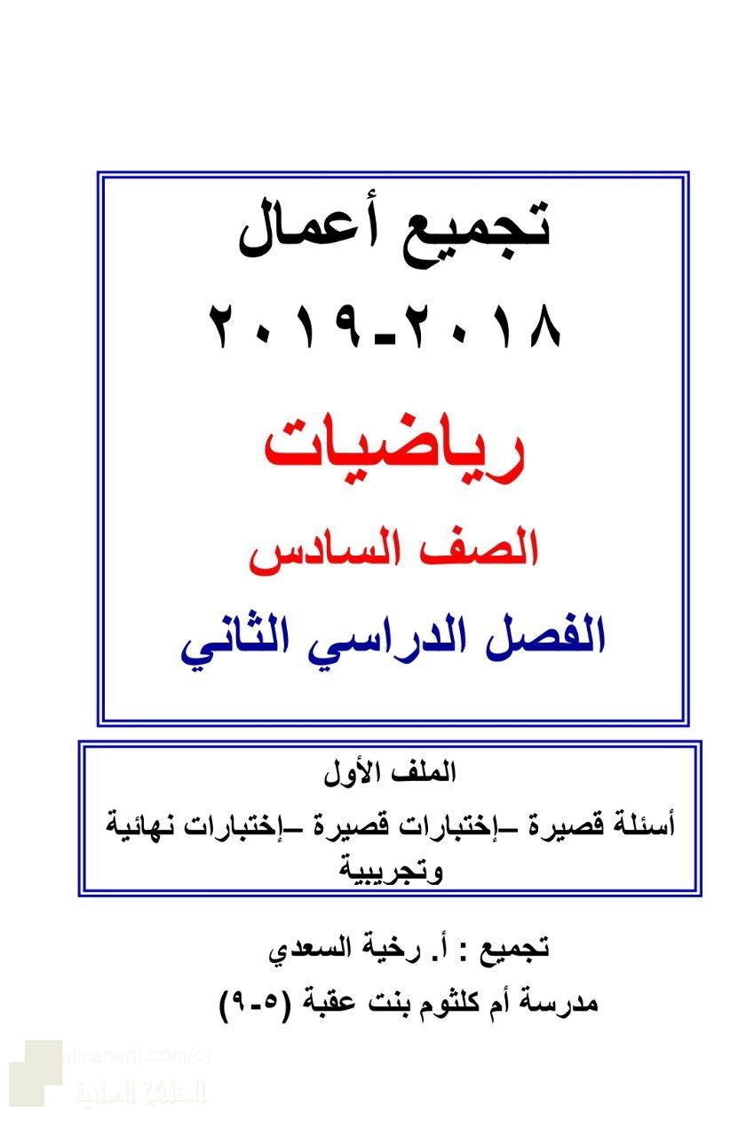 | السابق: دليل الطالب تجميع أعمال شاملة للمنهج ملف ثاني | الملف الحالي في الصف السادس: 20055 | التالي: تلخيص الوحدة الأولى قياس الكتلة وتحديد الوقت والمناطق الزمنية و حساب المساحة والمحيط |