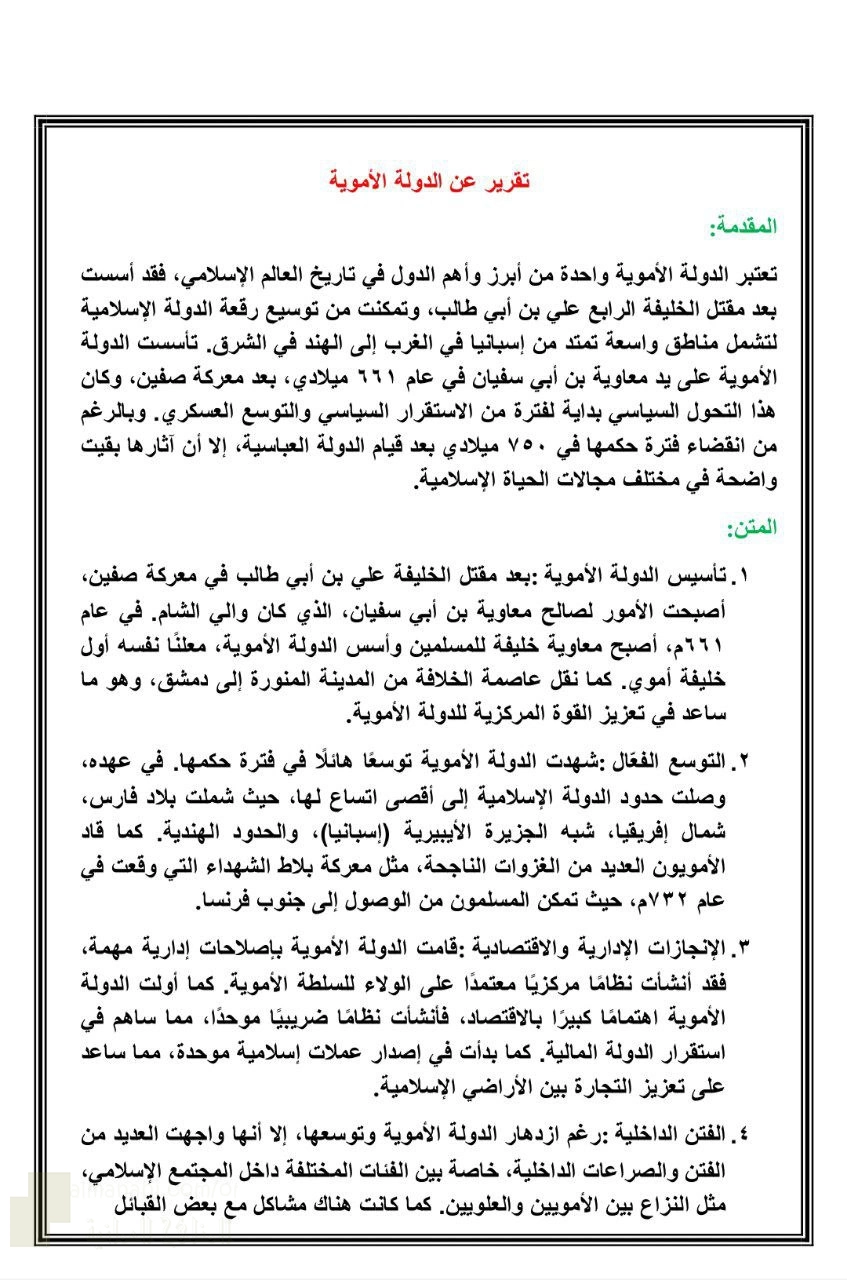 12. علوم, تقرير عن الدولة الأموية النشأة والتوسع والإرث التاريخي