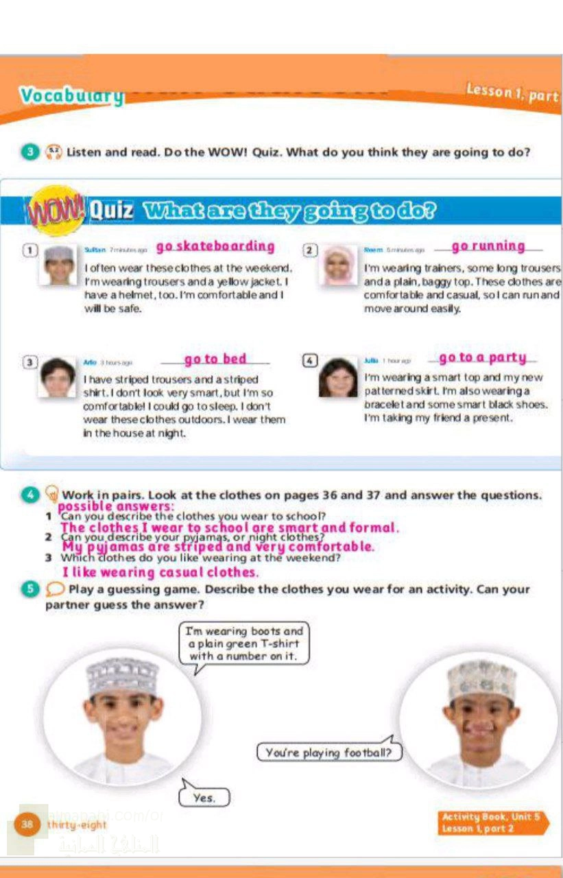 2. لغة انجليزية, مفردات الوحدة الخامسة الملابس المفضلة ووصفها