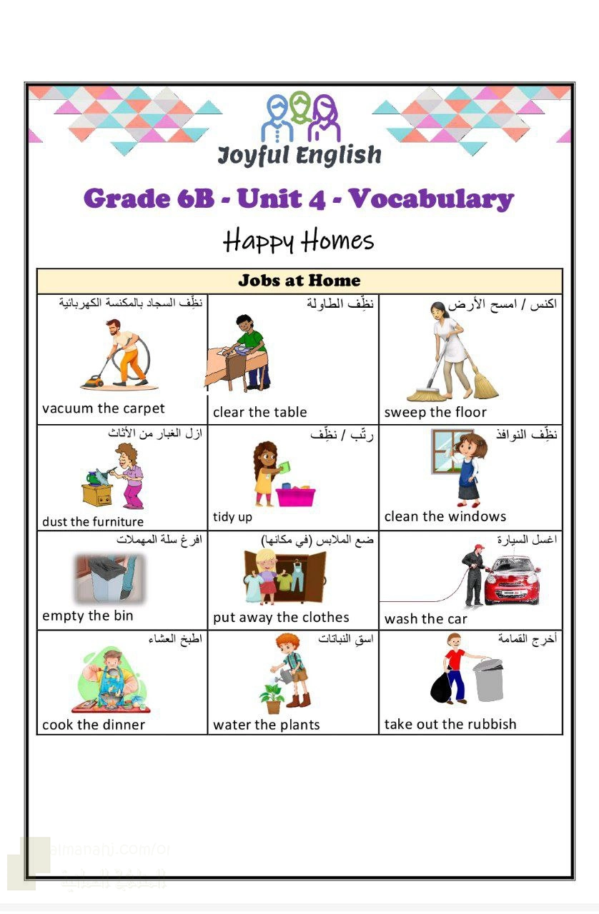 10. لغة انجليزية, مفردات الوحدة الرابعة المنازل السعيدة والطعام والشراب