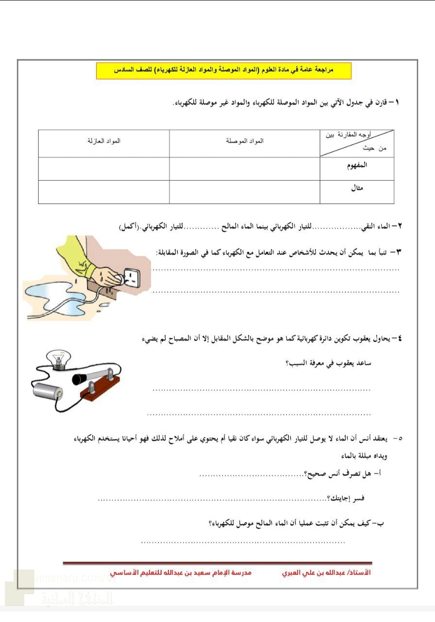 اضغط هنا لتحميل الملف: مراجعة شاملة لمفاهيم المواد الموصلة والعازلة للكهرباء