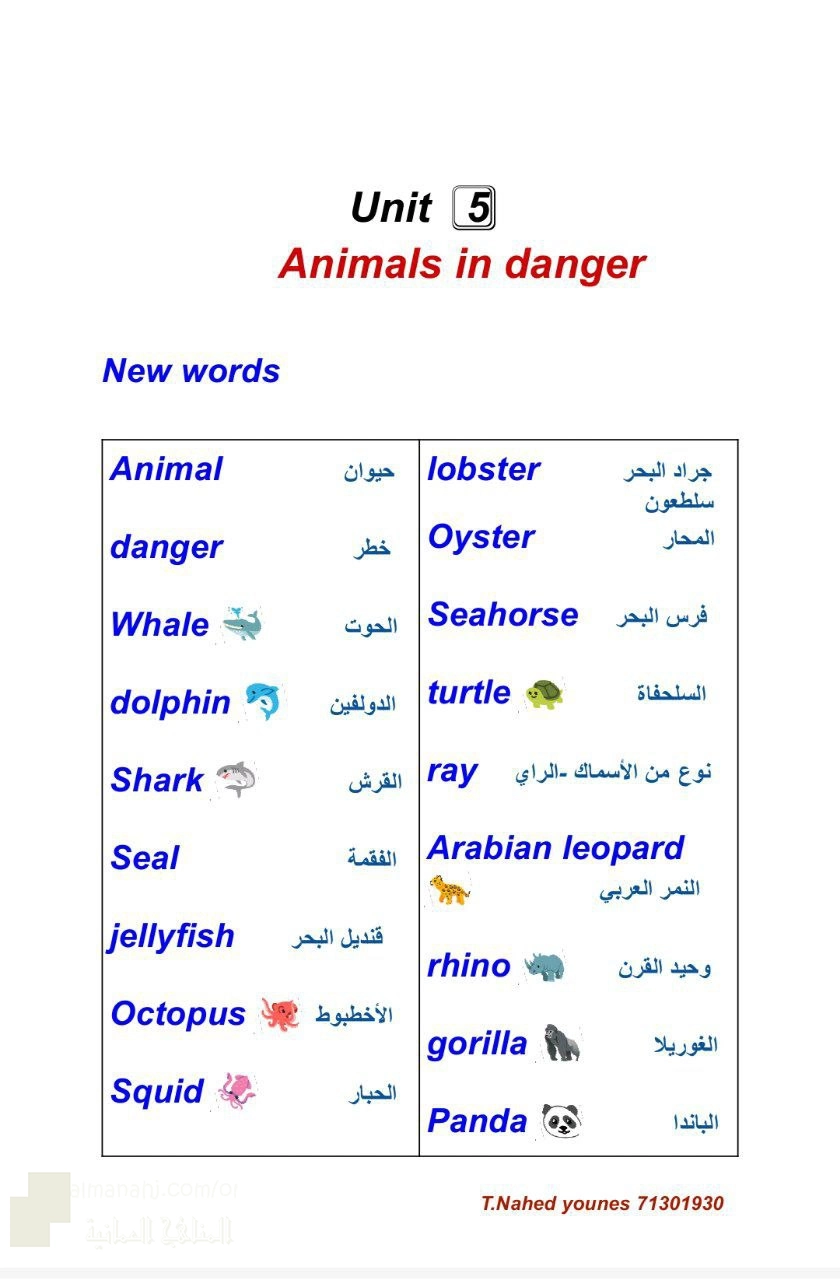 14. لغة انجليزية, مراجعة الوحدة الخامسة الحيوانات المهددة بالانقراض مفردات قواعد ومهارات لغوية متكاملة