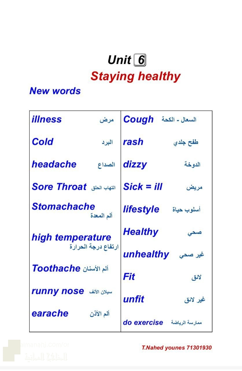 | مراجعة الوحدة السادسة الحفاظ على الصحة من خلال المفردات والقواعد والممارسة - إعداد: Nahed Younes | ||