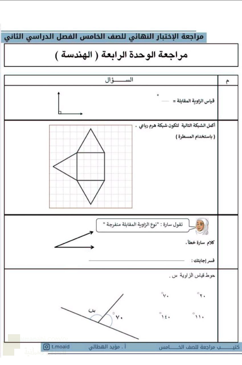 10. رياضيات, الوحدة الخامسة تمارين القياس العلمي غير محلول