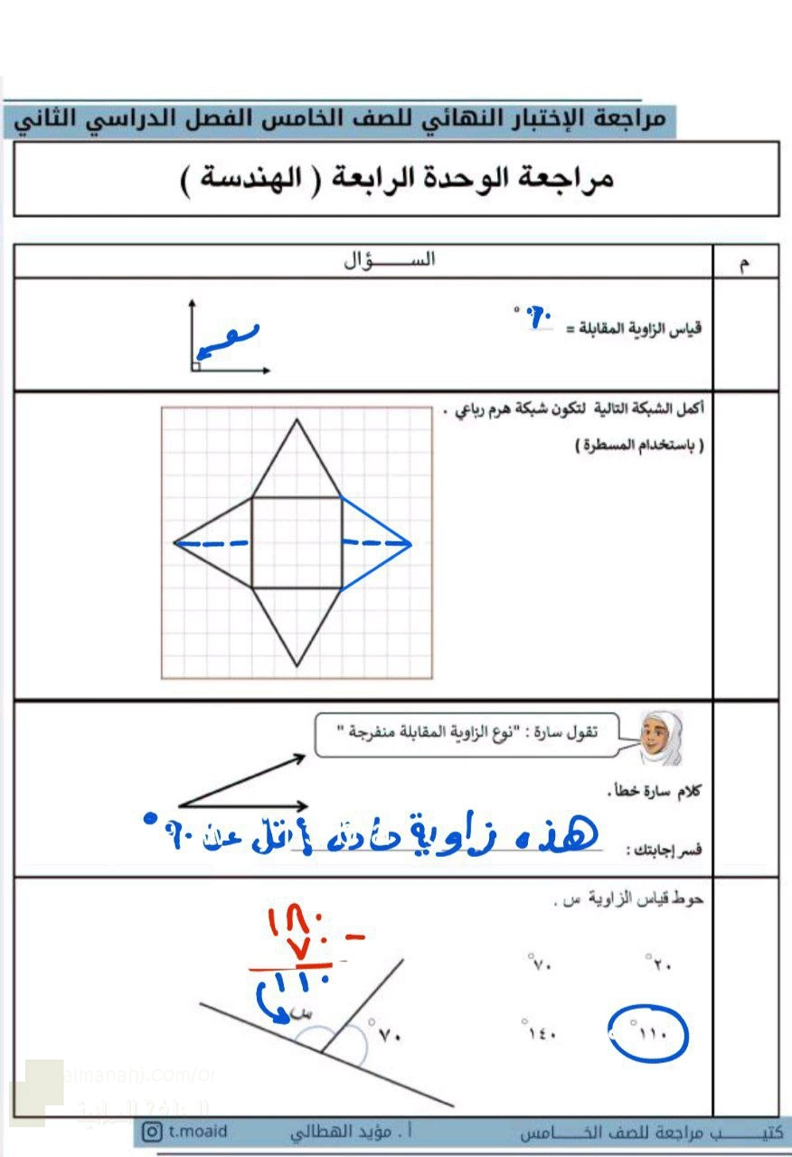 12. رياضيات, الوحدة الخامسة تمارين القياس العلمي غير محلول