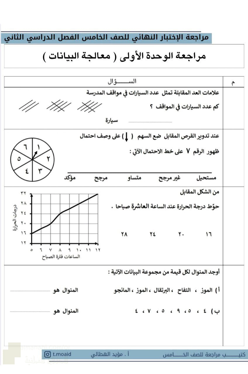 6. رياضيات, الوحدة الأولى معالجة البيانات مراجعة التمثيل البياني والاحتمالات غير محلول
