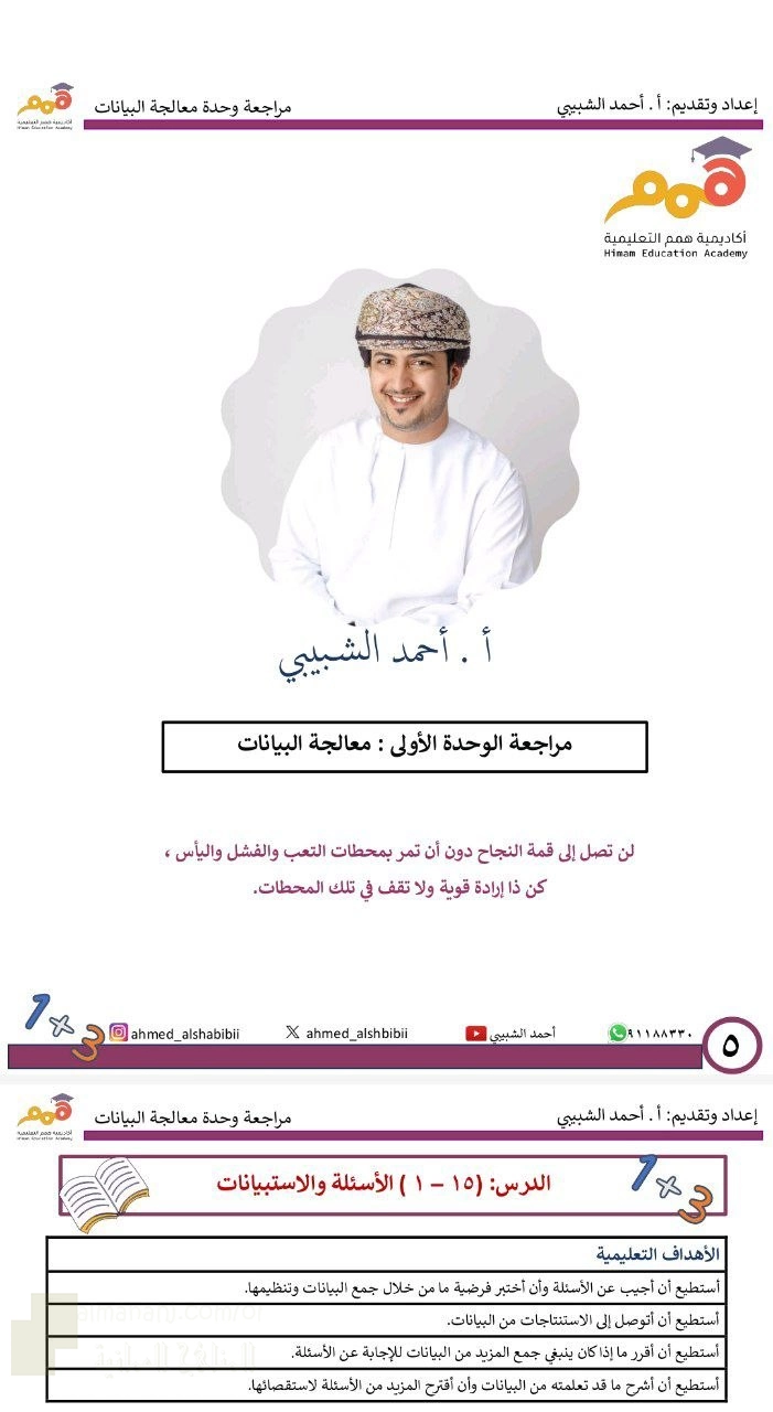 5. رياضيات, مذكرة معالجة البيانات حول التمثيل البياني والاحتمالات والإحصاء غير محلول