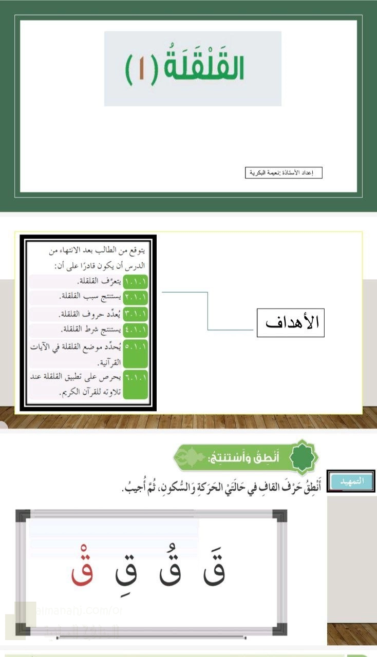 اضغط هنا لتحميل الملف: درس القلقلة في التلاوة القرآنية وأهدافه التعليمية