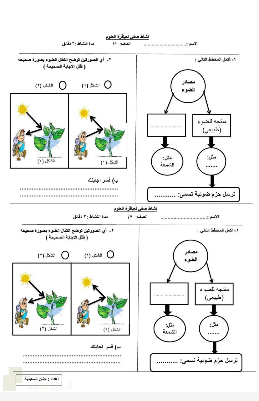 | ورقة عمل انتقال الضوء من مصدر - إعداد: حنان السعيدية | ||