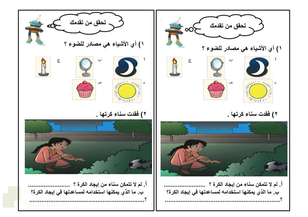 الوصف: يهدف النشاط إلى تعزيز فهم العلاقة بين الضوء والقدرة على الرؤية. | ||