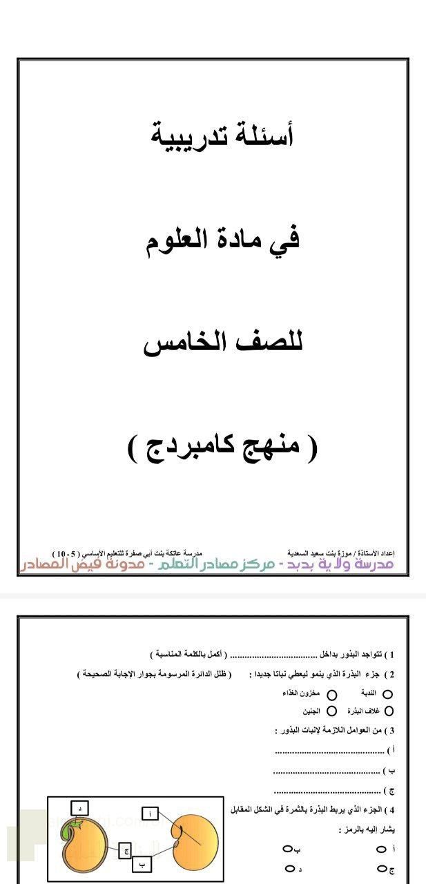 1. علوم, منهج كامبردج أسئلة تدريبية شاملة لوحدات النباتات وحالات المادة