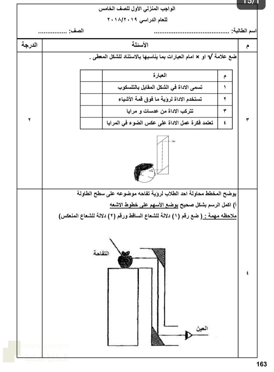3. علوم, اختبارات قصيرة في الضوء والمرايا قانون الانعكاس وتطبيقاته العملية