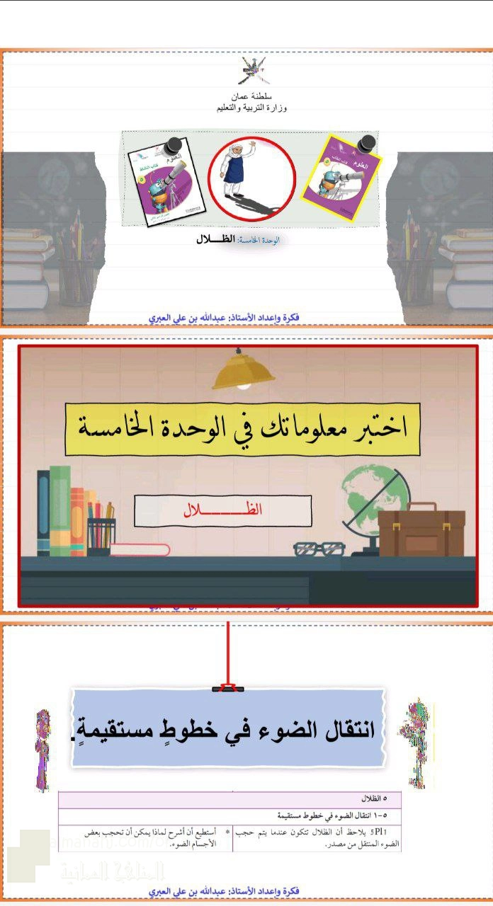 3. علوم, مراجعة شاملة للوحدة الخامسة الظل المفاهيم والتطبيقات العملية