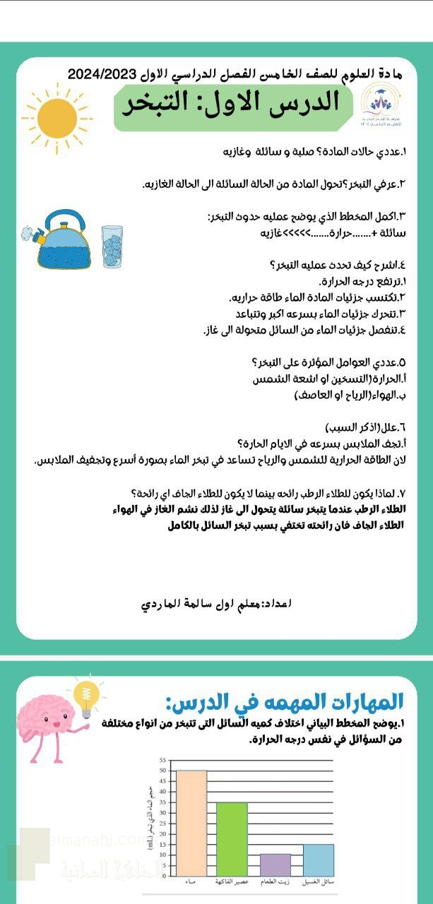 اضغط هنا لتحميل الملف: درس التبخر من الحالة السائلة إلى الغازية2024