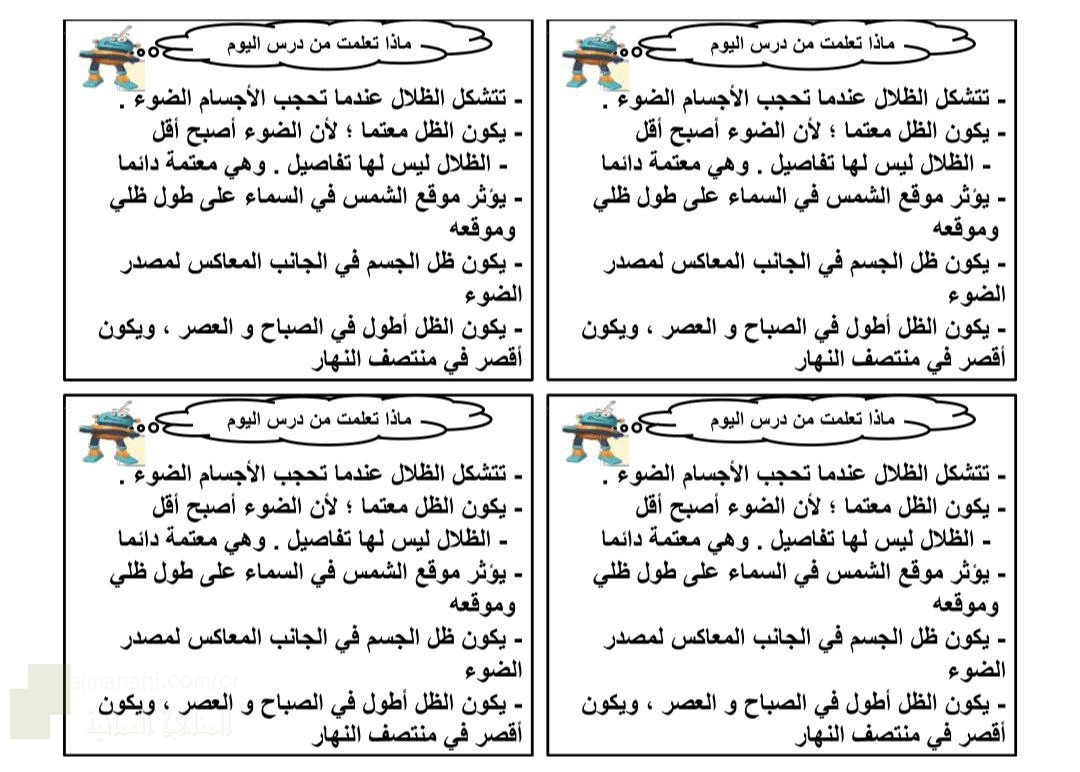 اضغط هنا لتحميل الملف: ورقة عمل ماذا تعلمت عن الظل والظلال