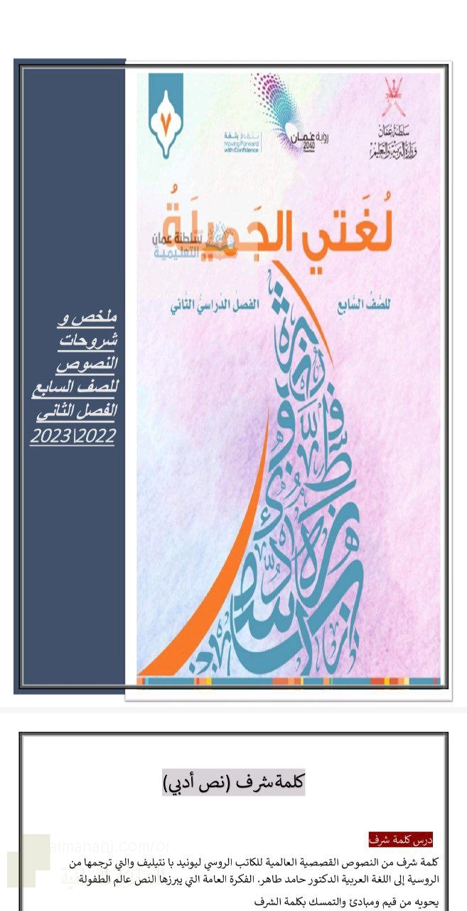 1. لغة عربية, ملخص شروحات النصوص شامل