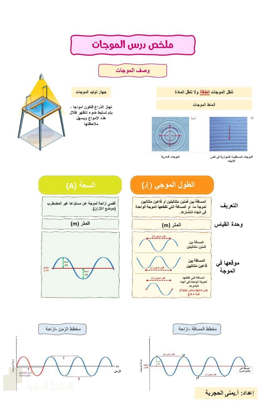 | ملخص شامل حول الموجات والصوت والكهرومغناطيسية والمغناطيسية - إعداد: يمنى الحجرية | ||
