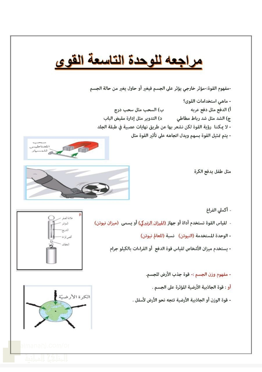 4. علوم, مراجعة شاملة لوحدة القوى المفاهيم الأساسية أنواع القوى والتطبيقات العملية