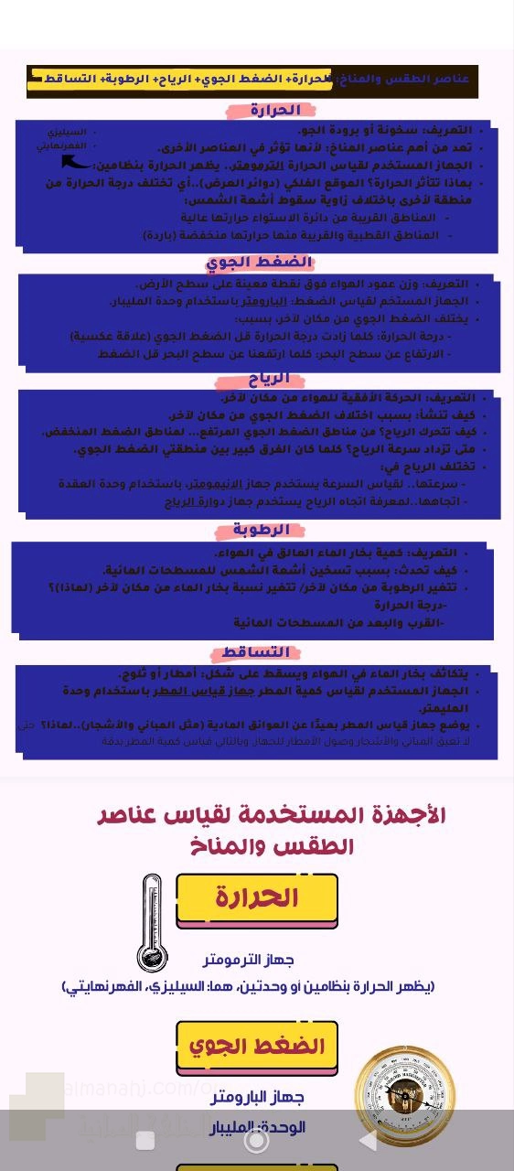 اضغط هنا لتحميل الملف: ملخص عناصر الطقس والمناخ والأجهزة المستخدمة لقياسها