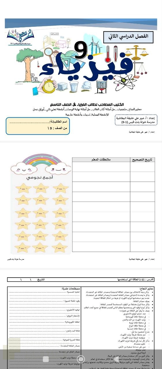 | السابق: كراسة التفوق في فيزياء تجميع شامل للدروس والامتحانات في الطاقة والضوء والكهرباء | الملف الحالي في الصف التاسع: 20280 | التالي: الوحدة الحادية عشر مصادر الطاقة |
