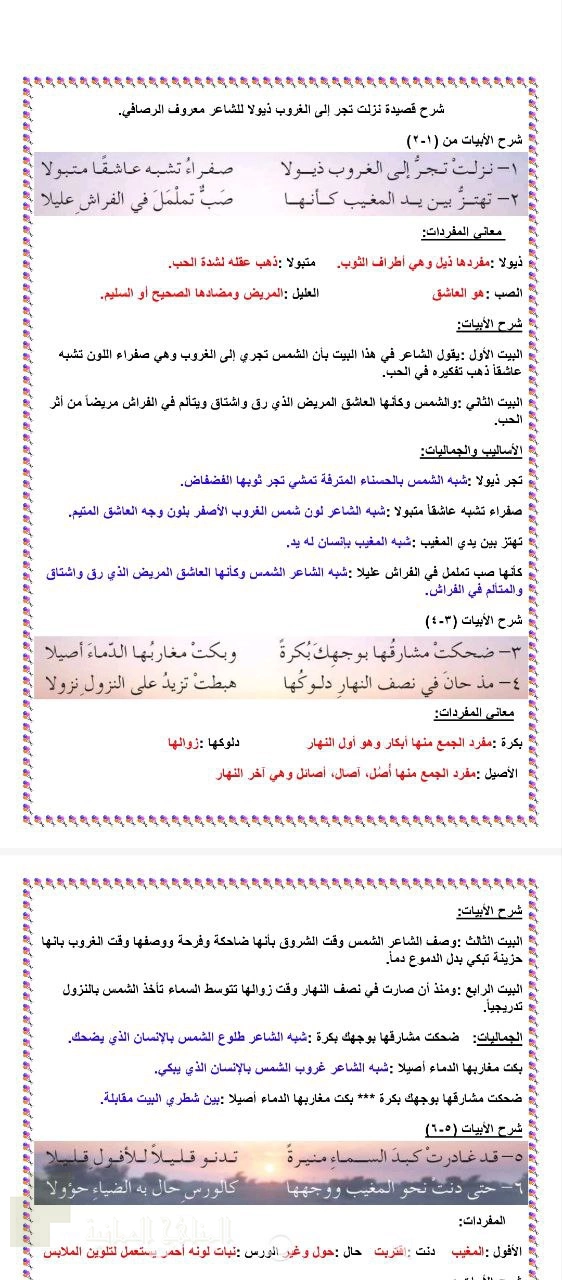 اضغط هنا لتحميل الملف: شرح قصيدة نزلت تجر إلى الغروب