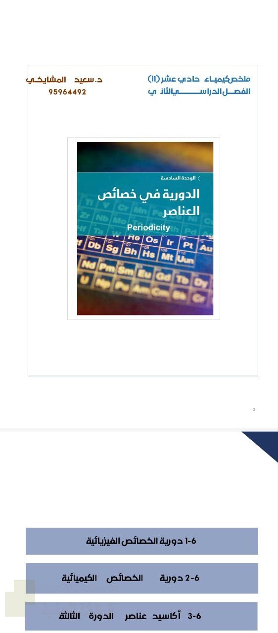 8. كيمياء, الوحدة السادسة دورية الخصائص الفيزيائية والكيميائية في الجدول الدوري