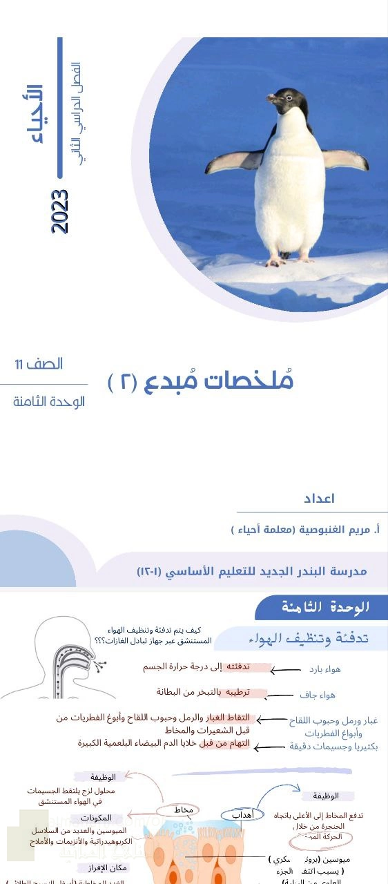 6. أحياء, ملخصات مبدع الوحدة الثامنة الحويصلات الهوائية الوظيفة والتكيفات التركيبية