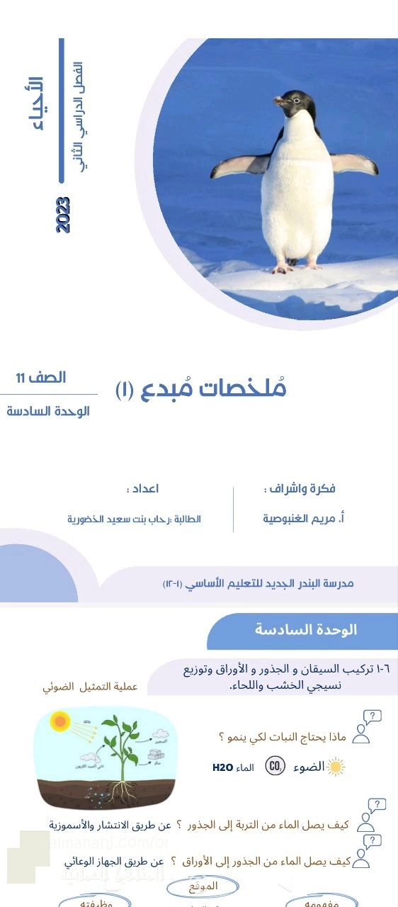 | ملخصات مبدع الوحدة السادسة تركيب السيقان والجذور والأوراق وتوزيع نسيجي الخشب واللحاء - إعداد: الطالبة رحاب بنت سعيد الخضورية | ||