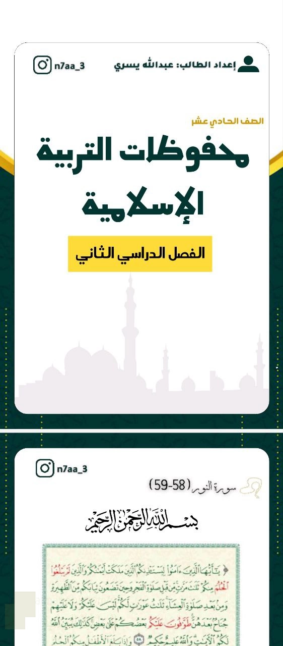 2. تربية اسلامية, ملف يحتوي محفوظات التربية