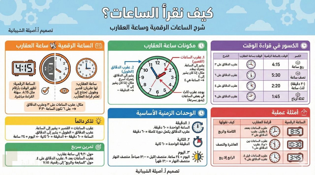 اضغط هنا لتحميل الملف: كيف تقرأ الساعات
