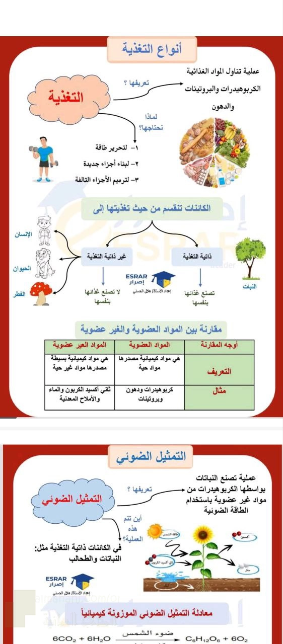 5. أحياء, ملخص الوحدة الأولى أنواع التغذية والتمثيل الضوئي والأوراق