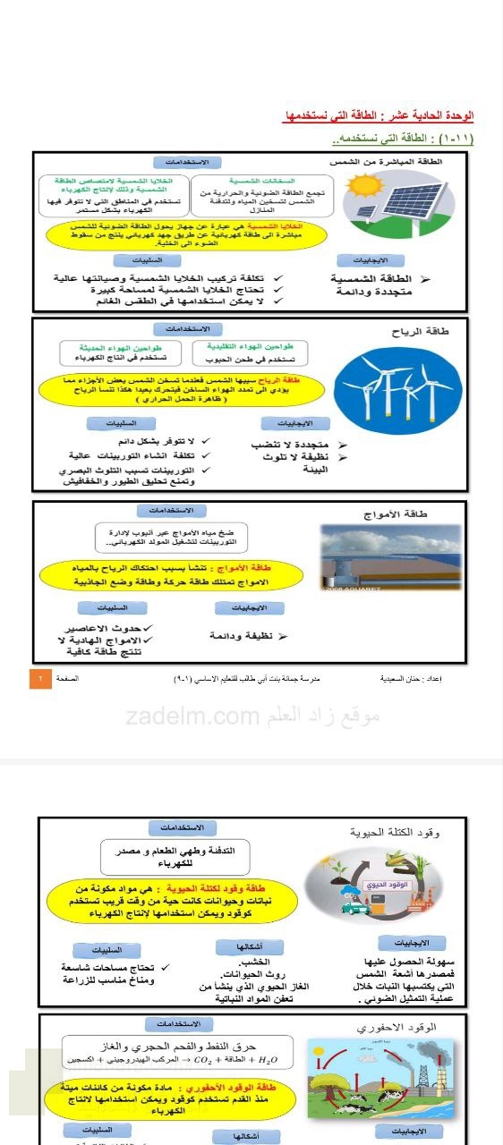 اضغط هنا لتحميل الملف: مراجعة الوحدة الحادية عشر الطاقة التي نستخدمها