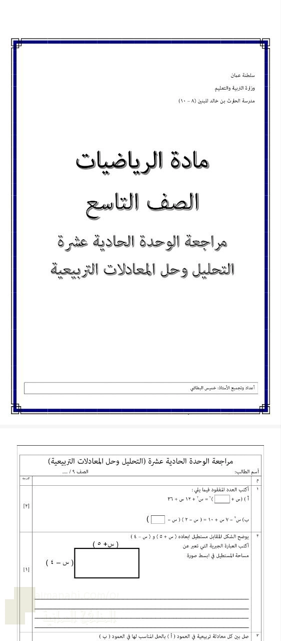 4. رياضيات, مراجعة الوحدة الحادية عشر التحليل وحل المعادلات التربيعية