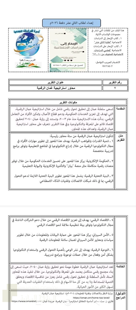 اضغط هنا لتحميل الملف: تقرير عن محاور استراتيجية عمان الرقمية