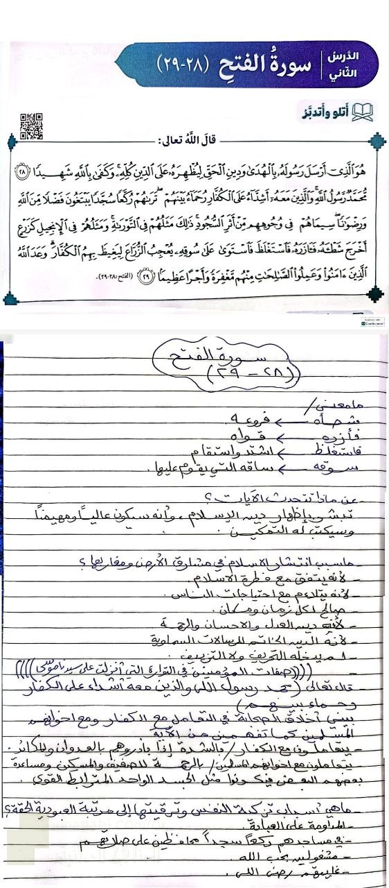 9. تربية اسلامية, ملخص لدرس سورة الفتح الآيات ٢٨-٢٩ بيان صفات المؤمنين وعلو الدين