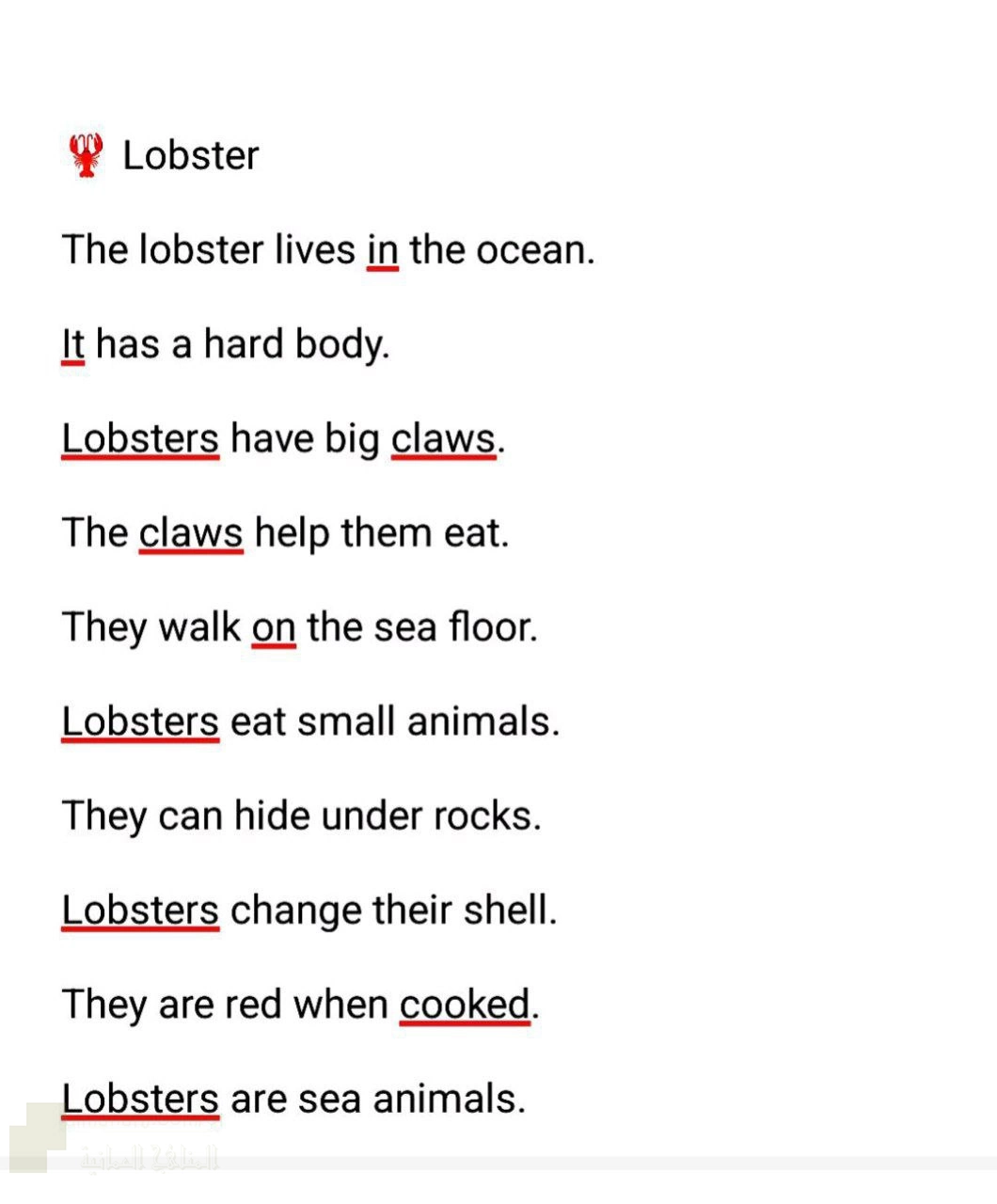 اضغط هنا لتحميل الملف: وصف سهل لحيوان الأستاكوزا الكركند مع الترجمة
