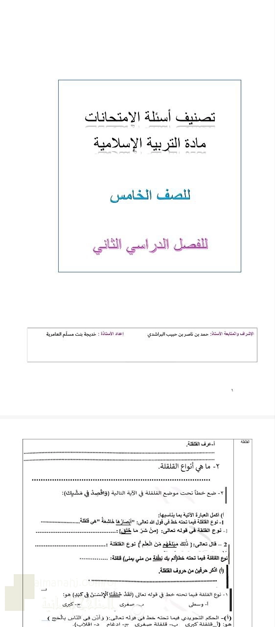 5. تربية اسلامية, تصنيف أسئلة الامتحانات