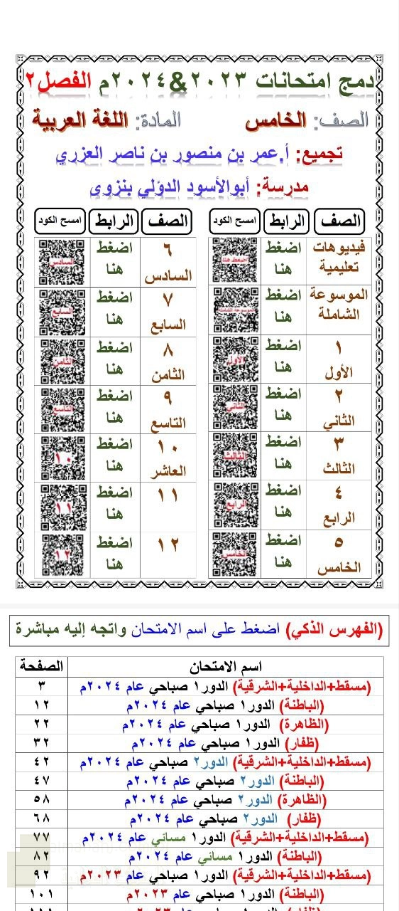 الوصف: يحتوي هذا الملف على مجموعة شاملة من نماذج امتحانات مادة اللغة العربية للصف الخامس الأساسي في سلطنة عمان للفصل الدراسي الثاني للعامين 2023 و2024. | ||