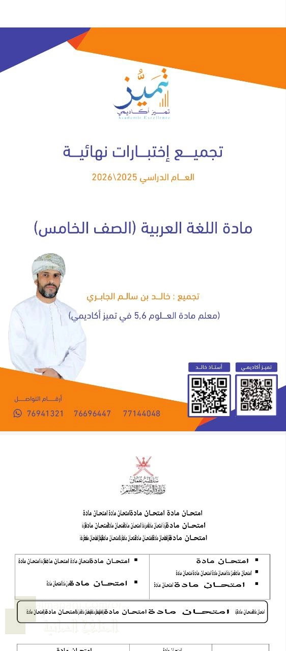 | أهلاً بكم جميعاً طلاباً ومدرسين وأهالي طلبة ومهتمين، في قسم دولة سلطنة عُمان ، نحن الآن في الفصل الثاني من العام الدراسي 2025/2026 وتاريخ اليوم 2026/02/06 م | |