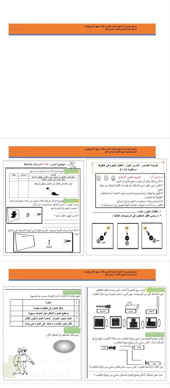اضغط هنا لتحميل الملف: مراجعة الوحدة الخامسة استكشاف خصائص الضوء والظلال