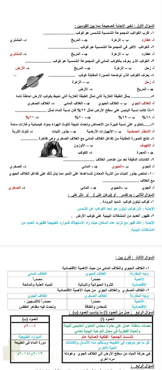 | ملخص مراجعة علوم كوكب الأرض والبيئة | ||