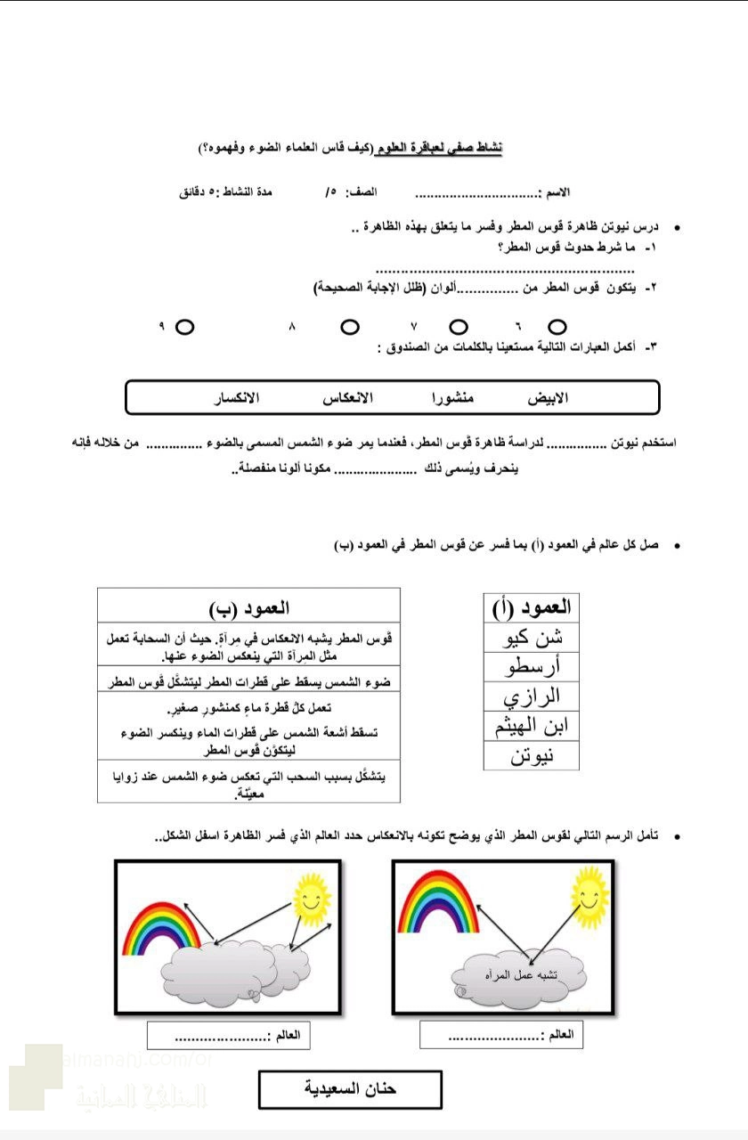 5. علوم, نشاط صفي للعباقرة أوراق عمل كيف قاس العلماء الضوء