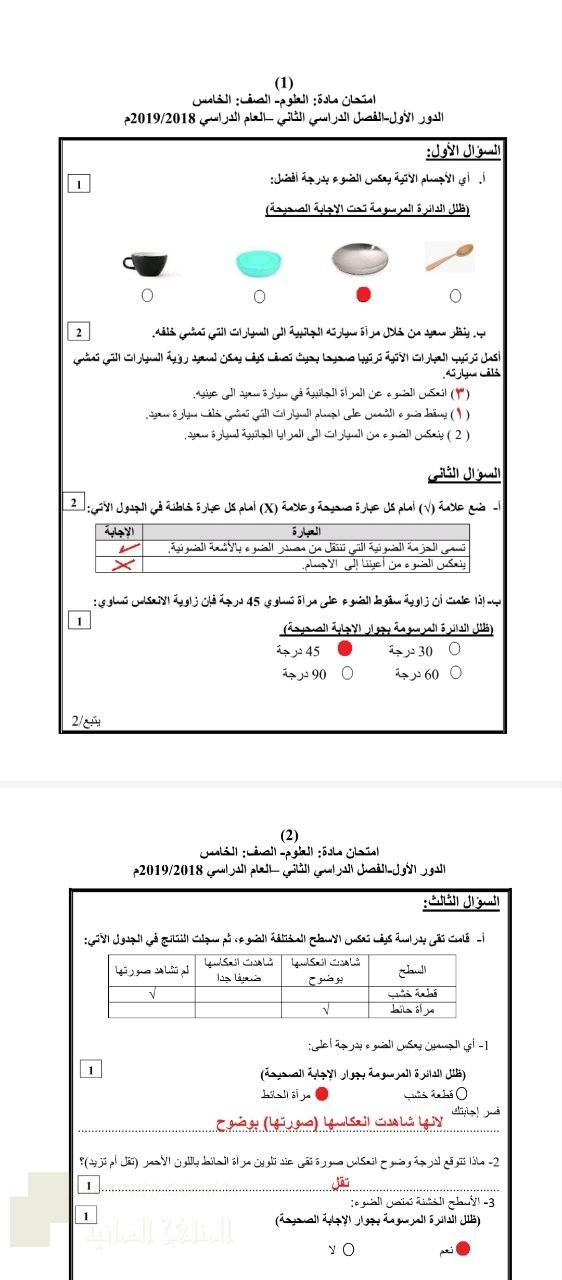5. علوم, تميز دمج أسئلة امتحانات سابقة 2025 و 2026