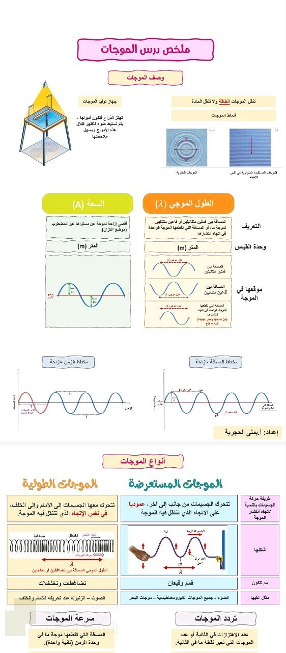 | تجميع ملخصات شاملة درس الموجات - إعداد: يمنى الحجرية | ||